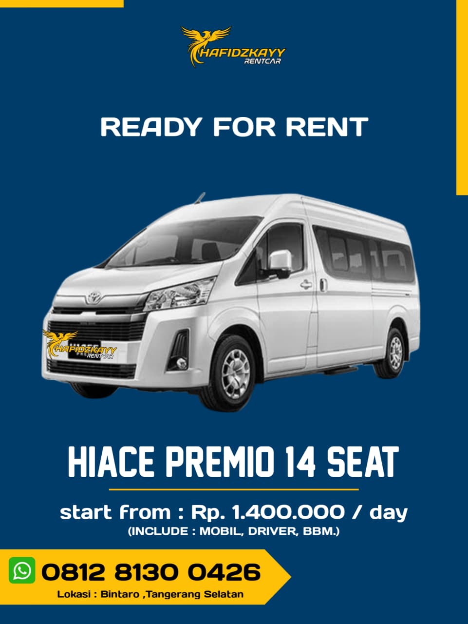 Selain itu, layanan sewa mobil Hiace Premio 14 Seat include driver juga memberikan kemudahan bagi pelanggan yang membutuhkan kendaraan untuk perjalanan wisata maupun perjalanan bisnis. Dengan proses pemesanan yang mudah serta kendaraan yang selalu dalam kondisi terbaik, Hafidzkayy Rentcar siap menjadi solusi transportasi terpercaya bagi berbagai kebutuhan perjalanan Anda dengan layanan profesional, cepat, aman, nyaman, dan harga yang kompetitif.
