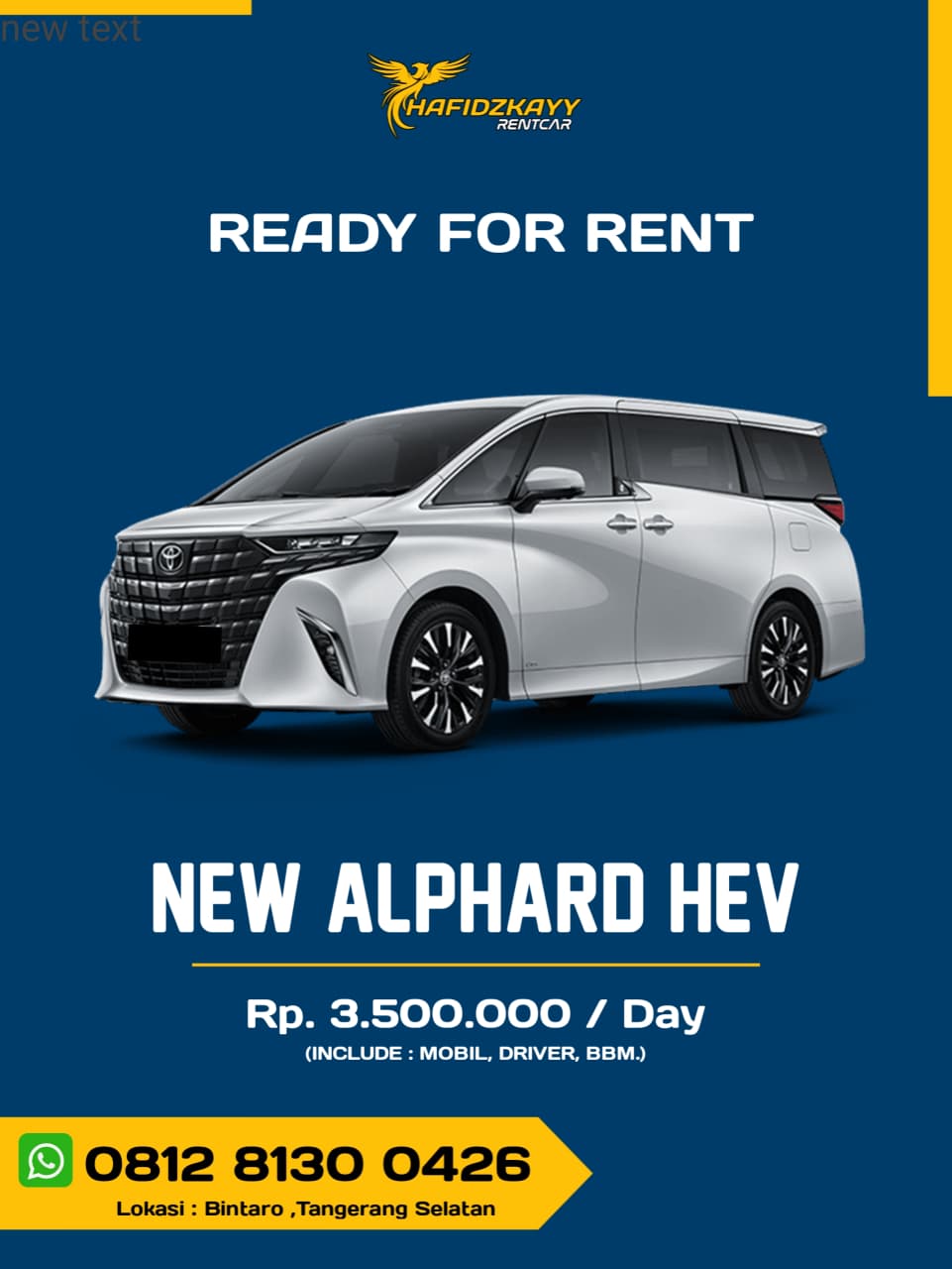 Rental Mobil New Alphard HEV Include Driver